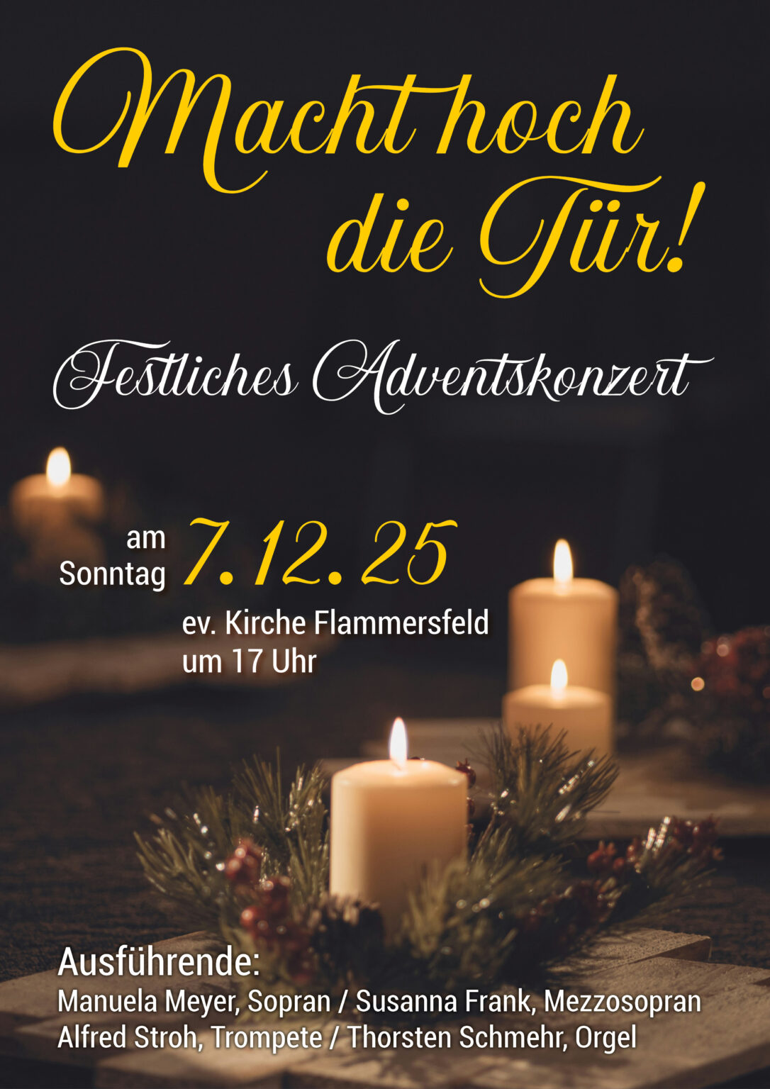 Sonntag, 7. Dezember 2025 · Evangelische Kirche Flammersfeld Am zweiten Advent lädt die Evangelische Kirchengemeinde Flammersfeld herzlich zu …