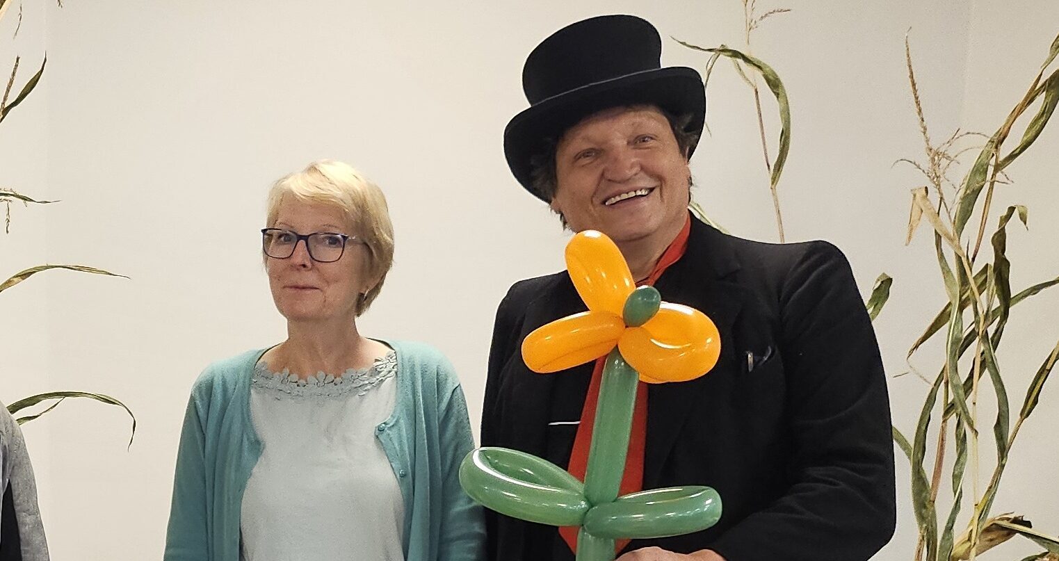 Aber nicht nur die Bücherei war auf dem Regionalmarkt vertreten – auch unser Jugendleiter Udo Mandelkow hat unseren Stand tatkräftig unterstützt und dafür gesorgt, dass der Besucherstrom nie abriss. Mit viel Charme und Witz formte er aus langen Luftballonschlangen Hunde, Pferde, Einhörner, Krokodile und sogar einen Adler 😮