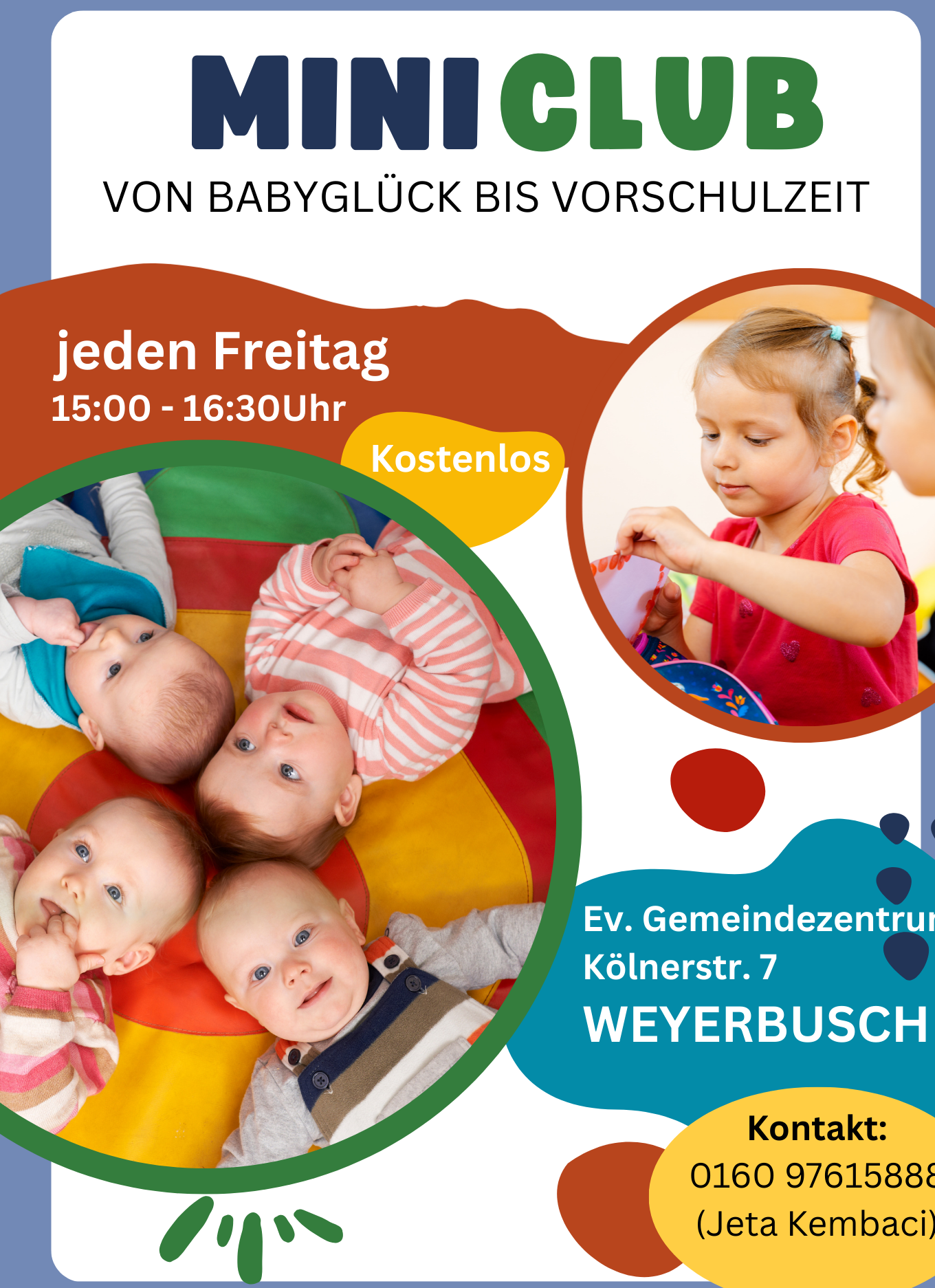 Kommt vorbei, lernt andere Familien kennen und verbringt mit uns eine schöne, entspannte Zeit mit Spiel, Spaß und Austausch! ☀️ 📞 Kontakt: Jeta Kembaci – 0160 97615888