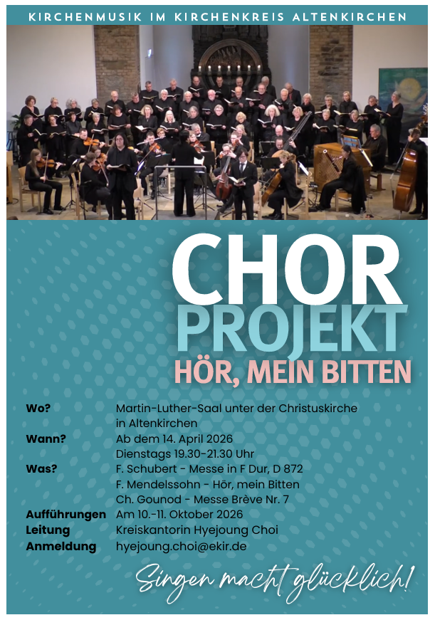 Aufführung: 10.–11. Oktober 2026 (ev. Kirche in Kirchen und Christuskirche in Altenkirchen)