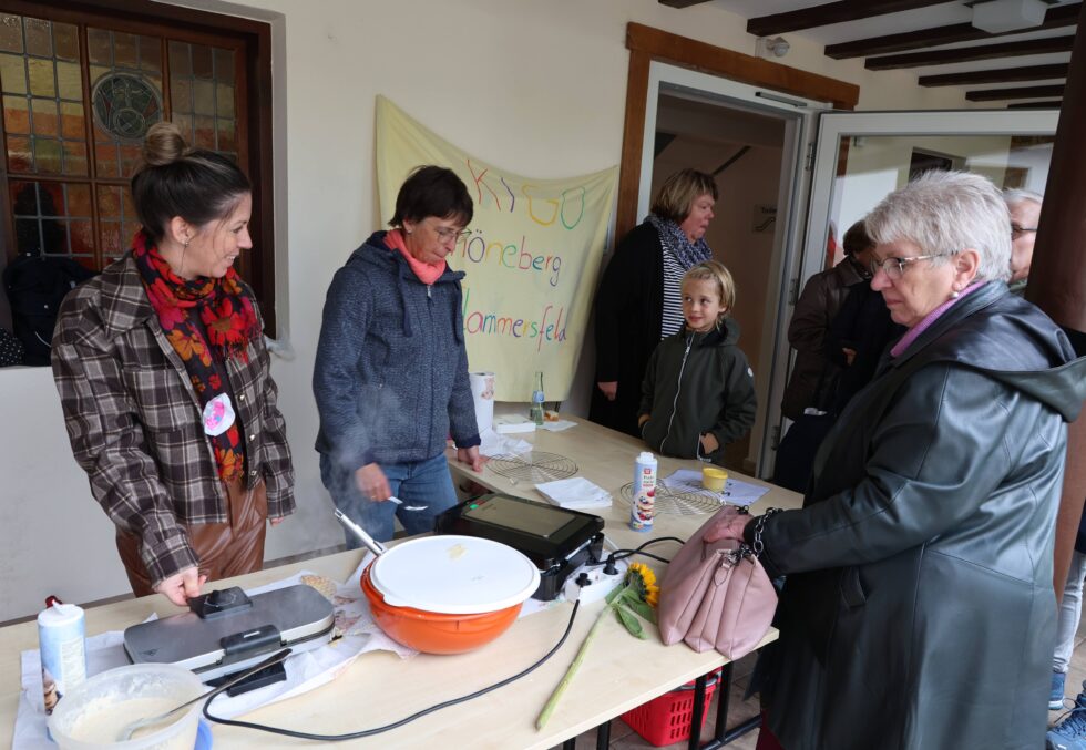 Im Anschluss an den Gottesdienst fand ein geselliges Beisammensein rund um die Stände im und um das Gemeindehaus in Mehren statt. Bei Kuchen, Kaffee, Waffeln, Brot, Suppe, Würstchen und Zwiebelkuchen kam es zu netten Begegnungen. Musikalisch umrahmt wurde der Tag durch Musikbeiträge des Hegerings Altenkirchen.